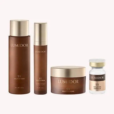 肌泌 LUMIDOR 日常養護 基底膜x外泌體 日常養護 密集修復 與眾不同的Lumidor 肌泌外泌體 獨家專利製程與智能農場管控 植物高活性外泌體 激活肌底更新 高親膚性與多重養護肌膚配方設計 深度調控基底膜更新與再生週期 精準修護與強健皮膚屏障功能 創新外泌體複合配方,精準迅速解決皮膚困擾。 PX CARE PX CARE 關鍵4步驟 全面由內而外提升肌膚自我再生修復力,再現年輕澎彈淨潤光澤奇蹟超逆齡前導露: Exo-Cica® 結合 複合酸(PHA+BHA)奇蹟超逆齡EXO精華安瓶: Exo-Cica® 結合A醇奇蹟超逆齡精華乳: Exo-Cica®、TECA-3、Exo-LACTO奇蹟超逆齡再生精華霜: Exo-Cica®、TECA-3、Exo-Heartleaf 步驟 01奇蹟超逆齡前導露雙重功效配方,兼具光滑柔軟角質與舒緩功效。含溫和 複合酸(PHA+BHA) 前導露,能有效滲透肌底,加速肌膚新陳代謝並去除老廢角質,讓角質層光滑柔軟,防止毛孔堵塞、粗大,平衡肌膚油水、強化肌膚屏障、細緻膚質。蘊含高純度積雪草外泌體( Exo-Cica®),能有效舒緩敏弱肌膚,再生修復肌膚。各種膚質都能安心使用,幫助後續肌膚保養更快更有效吸收。 步驟 02PX Solution 奇蹟超逆齡EXO精華安瓶 珍稀高濃度積雪草外泌體,強化肌膚屏障,舒緩敏弱。高活性A醇精準啟動肌膚深層再生,淡化細紋,重塑緊緻彈力。高效修護的同時獲得舒緩. 恢復年輕活力,彈潤飽滿, 重回零瑕疵的柔嫩透亮健康肌膚。6 mL x 12 瓶 步驟 03奇蹟超逆齡精華乳嚴選臨床研究開發的各項活性成分,專為有效舒緩肌膚緊繃壓力的精華乳而設計。蘊含 積雪草外泌體(Exo-Cica®)與TECA-3 (含積雪草苷、羥基積雪草酸和積雪草酸的複合成分)協同作用,能深入肌底,有效舒緩肌膚泛紅乾癢不適。乳酸菌外泌體(EXO-LACTO),平衡肌膚微生態,修復並強健肌膚屏障。有效激活肌底彈力,由內而外再生修復,提亮膚色,保濕澎嫩,再現年輕光彩。各種膚質都能安心使用。 步驟 04奇蹟超逆齡再生精華霜專為舒緩都市環境汙染壓力的肌膚而設計的精華霜。蘊含 積雪草外泌體(Exo-Cica®)與魚腥草外泌體( Exo-Heartleaf),提供肌膚雙重舒緩修復。從肌底改善膚質,全方位修護粗糙暗沉,密集保濕,讓保濕彈嫩功效再加倍。特別專為乾燥肌與敏弱肌膚設計,強健肌膚保濕屏障,每日使用可修護日常老化暗沉痕跡,讓肌膚更加澎嫩、平滑。 獨家日常養護配方 奇蹟超逆齡再生舒緩霜獨特植物來源外泌體結合特有保濕配方,可強化皮膚屏障,長時間保持皮膚水潤光澤,避免肌膚乾燥泛紅。長效密集保濕、深層潤澤,日常肌膚防護舒緩,抵禦都市外部環境刺激與敏弱肌膚的不適,維持肌膚的最佳狀態。蘊含 積雪草外泌體(Exo-Cica®)及特別添加Ectoin,從肌底修護粗糙暗沉,強健肌膚屏障、能有效鎮靜及舒緩敏弱。含維他命B5,能在肌膚外形成一層透氣的保護膜,有效預防經皮散失水分(TEWL),幫助肌膚維持長效水潤飽滿,並有效舒緩皮膚的刺激感、泛紅乾癢不適感。含Licorice Root Extract (甘草根萃取液) 能淨透亮白滋養肌膚,淡化暗沉,均勻膚色。長效鎖水保濕配方,維持肌膚水潤光澤, 從內而外層層緊緻,平滑亮白,持久彈潤柔嫩功效更加倍! 植根於尖端肌膚科學,創新次世代肌膚養護特殊配方 密集精準調理 針對皮膚困擾部位密集精準作用,提供卓效專屬修護。 肌膚構成成分 精選肌膚主要構成成分(膠原蛋白等),根源維繫肌膚健康環境 多重複合活膚 注入充沛活力的調理成分(蛋白質等),全面喚醒肌膚生機與光采。 高親膚性設計 自然貼合肌膚,溫和不刺激,肌膚易吸收,更舒適高效養護肌膚 SX CARE (因遵守台灣法規規範,本系列產品不會在台灣上市販售) Step 01SX Solution toner줄기세포배양액 9,800ppm 함유로 피부에 생기와 활력을 부여합니다.피부 컨디션을 고려한 보습 · 영양 케어 입니다.200 mL Step 02SX Solution ampoule미백 · 주름개선 이중기능성줄기세포배양액과 NMN 조합으로 피부 회복에 도움을 줌홍삼사포닌 함유로 피부 영양공급 포뮬러50mL Step 03SX Solution serum미백 · 주름개선 이중기능성고기능 에이징 케어 포뮬러SX 복합 성분의 시너지로 탄력 케어피부를 건강한 컨디션 유지에 도움50 mL Step 04SX Solution cream미백 · 주름개선 이중기능성SX 고함량으로 차세대 탄력 케어 크림펩타이드 복합체로 고민을 다각도로 케어끈적임 없는 프리미엄 텍스처50 mL SX CARE Program피부에 깃드는 생기, 이어지는 건강한 탄력감구성품 (단품)토너 200 mL앰플 6 mL x 바이알 12 Vials x 바이알 캡 2 ea세럼 50 mL크림 50 mL X 스파츌라 (크림용) 1 eaKey MaterialsTONER인체지방조직유래줄기세포배양액 (9,800ppm), 세라마이드엔피AMPOULE인체지방조직유래줄기세포배양액 (100,000ppm), 판테놀, 수용성콜라겐SERUM인체지방조직유래줄기세포배양액 (147,000ppm) , 약모밀소포(EXO-어성초)CREAM인체지방조직유래줄기세포배양액 (10,000ppm), 펩타이드 11종 컴플렉스 Classic Skin Care SX nourishing cream지적 탄력 케어의 새로운 시작.빠르게 흡수되는 고영양 포뮬러가 피부를 편안하게 보호하고,리프팅과 탄탄한 피부 표현을 돕습니다.• 미백 · 주름개선 이중기능성구성품 (단품)크림 100 mL 1 eaeKey Materials인체지방조직유래줄기세포배양액 (10,000ppm)펩타이드 11종 컴플렉스레티놀 + 콜라겐